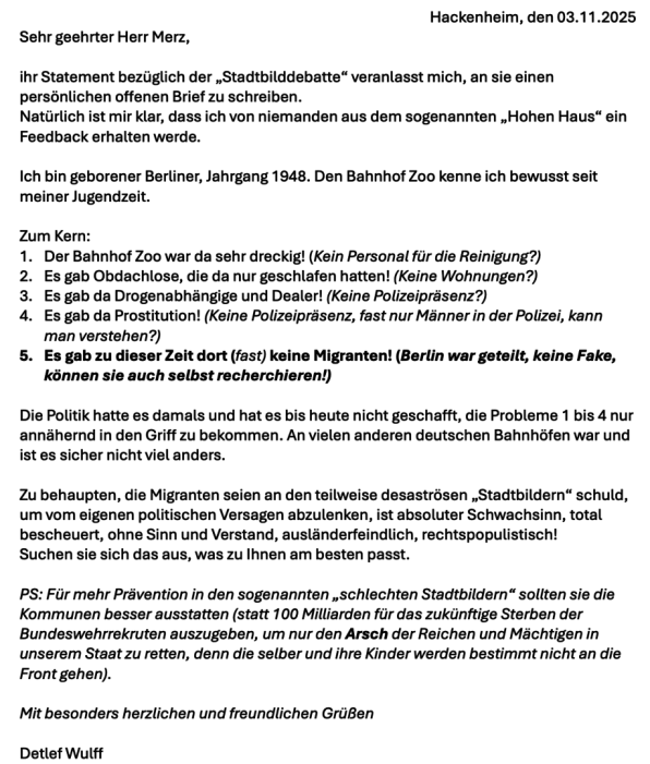 An Herrn Merz zur "STADTBILDDEBATTE"